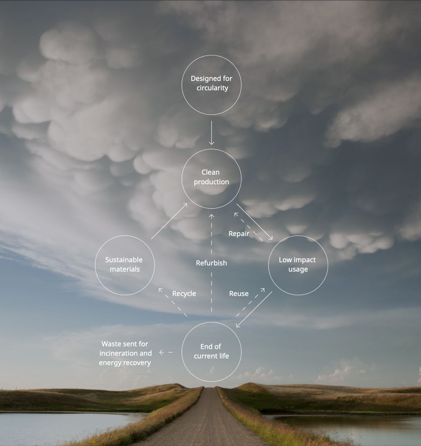 We believe a circular business model is the right way forward. A circular business model is about keeping materials in the usage phase for as long as possible, reduce the extraction of natural resources, and reduce the generated wastes.